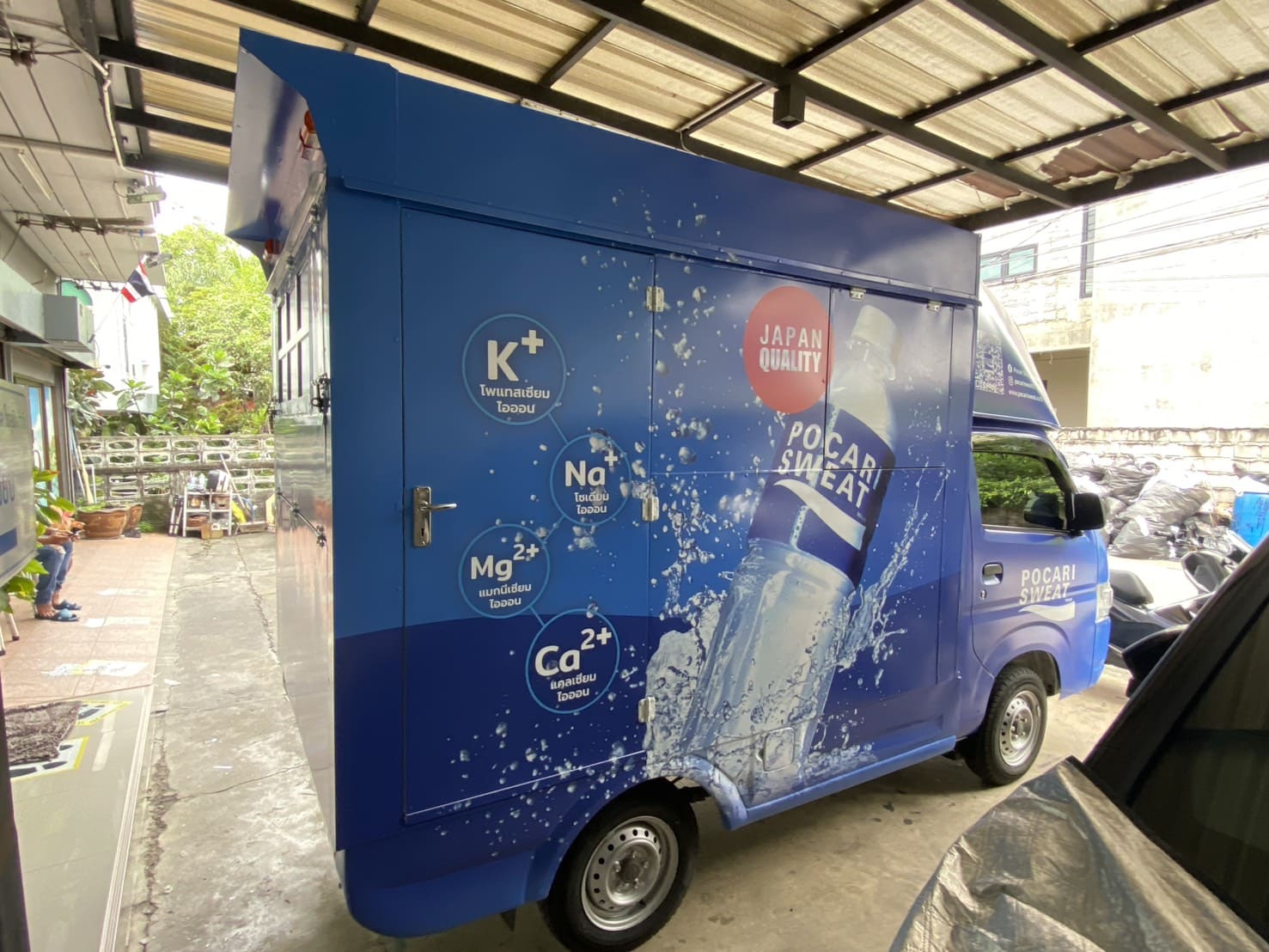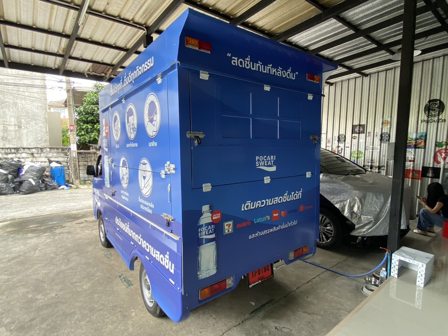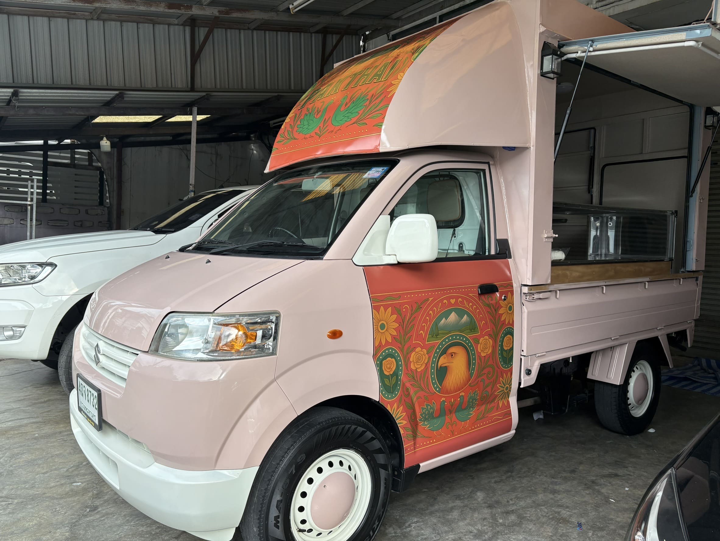 - รถซูซูกิแครี่ เป็นการนำตู้มาติดตรงบริเวณด้านหลัง พร้อมทั้งออกแบบประตูเปิดประมาณ 3 ด้าน โดยที่ข้างในรถ ต้องมีพื้นที่สำหรับวางเฟอร์นิเจอร์ประมาณ 3-5 ชิ้น รวมถึงเผื่อพื้นที่สำหรับทำกิจกรรมบนรถประมาณ 2 คน นั่นก็น่าจะเพียงพอ แล้วถึงมาดูในเรื่องของการนำสติ๊กเกอร์มาติดรถ foodtruck สำหรับเหตุผลที่ว่า ทำไมถึงนำรถซูซูกิมาใช้งานมากที่สุด จะเป็นในเรื่องของราคารถค่อนข้างถูกกว่ายี่ห้ออื่น อีกทั้งยังดัดแปลงง่าย ค่า maintenance ค่อนข้างถูกเพราะสามารถนำอะไหล่รถตุ๊กๆ มาใช้งานได้ กรณีใช้งานไปสักพักแล้วมีปัญหา